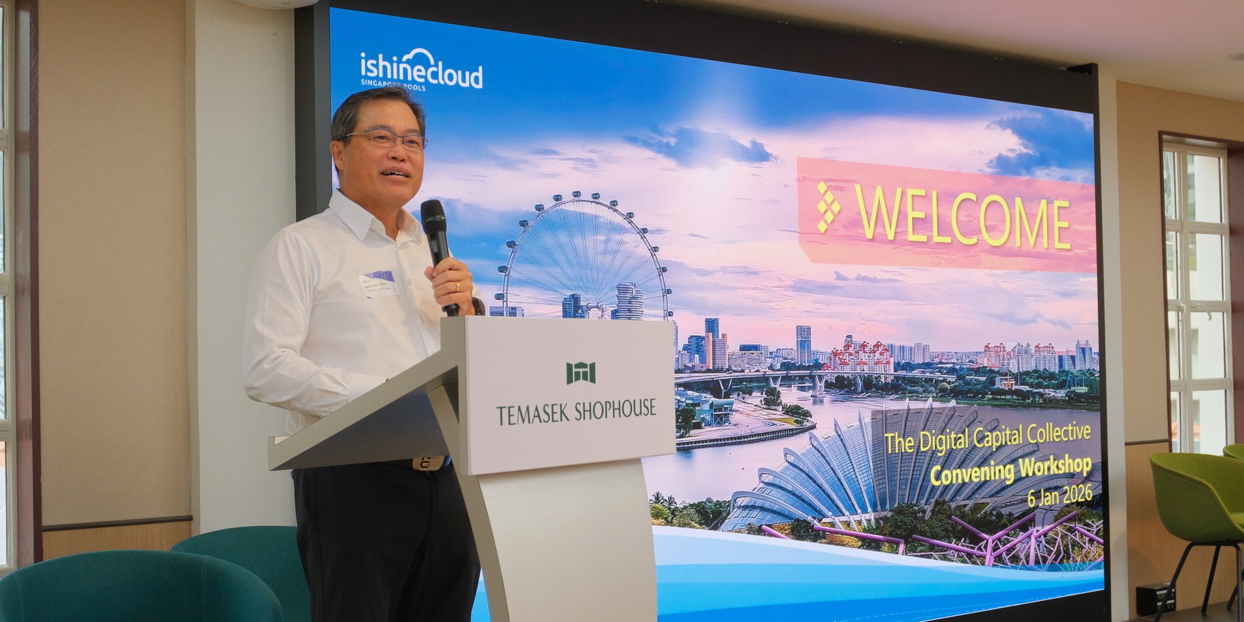 Mr Seah Chin Siong, Board Chair of iShine Cloud and DCC Sponsor, introduced The Digital Capital Collective (DCC) to over 70 charity leaders, funders, and technology partners at a workshop held at Temasek Shophouse.